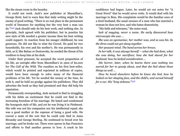 When Bessie had the Sterlings in for an evening, or they her, these were quiet affairs that contrasted greatly with the noisy Wednesday night parties Jack called his open house... It was an all-year-round invasion and made the house on the hill suggestive of Grand Central Station during the excursion season. There is no difficulty for a hostess to gain a foothold in the affections of the creative and near-creative, such as came to Piedmont to bask in the light of London's fame.